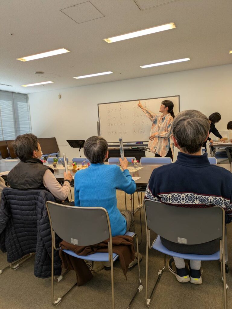 教育現場での経験を活かし、現在はご高齢の皆さまを対象としたフレイル予防・介護予防・QOL(生活の質)向上を目的とした音楽療法セッションをはじめ、大学での音楽療法に関する特別講義、また一般の方を対象とした音楽療法の理解と普及を目的とした体験型セッションなど、幅広い活動も行っています。